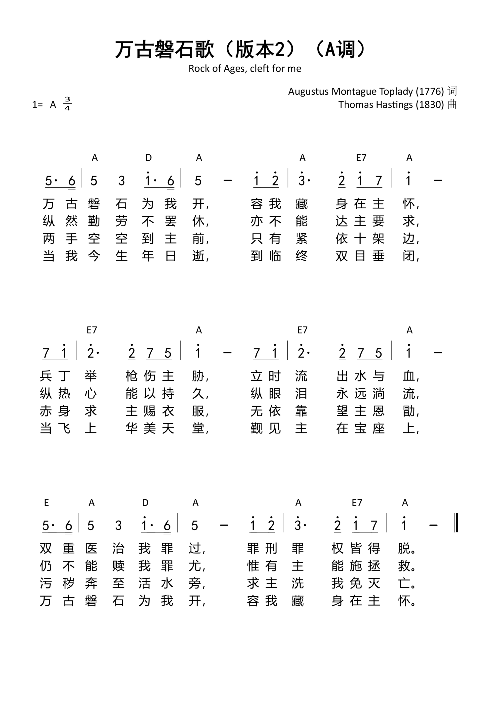 第557首 - 万古磐石歌(版本2)(A调)和弦简谱