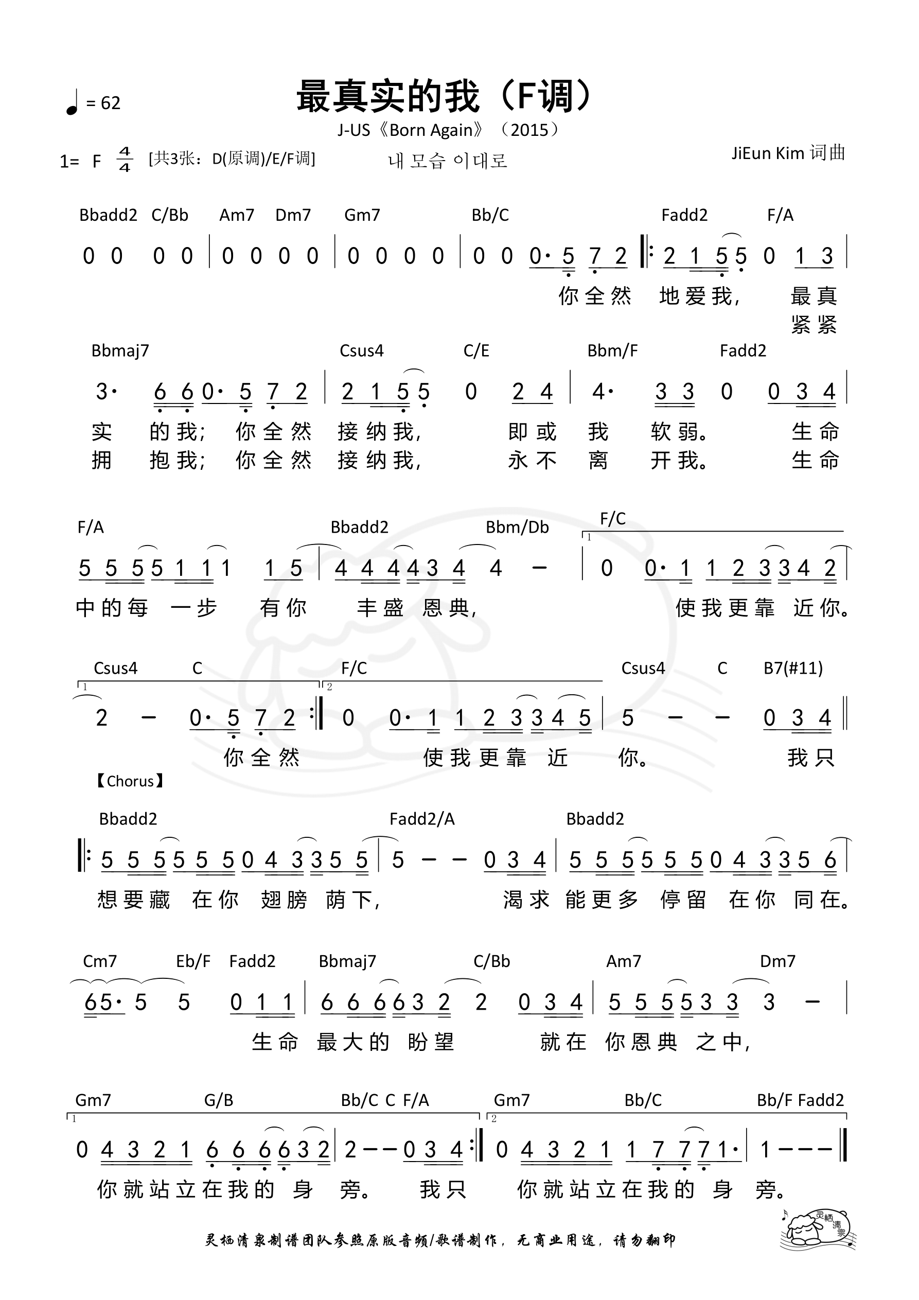 第3986首 - 最真实的我(F调)和弦简谱