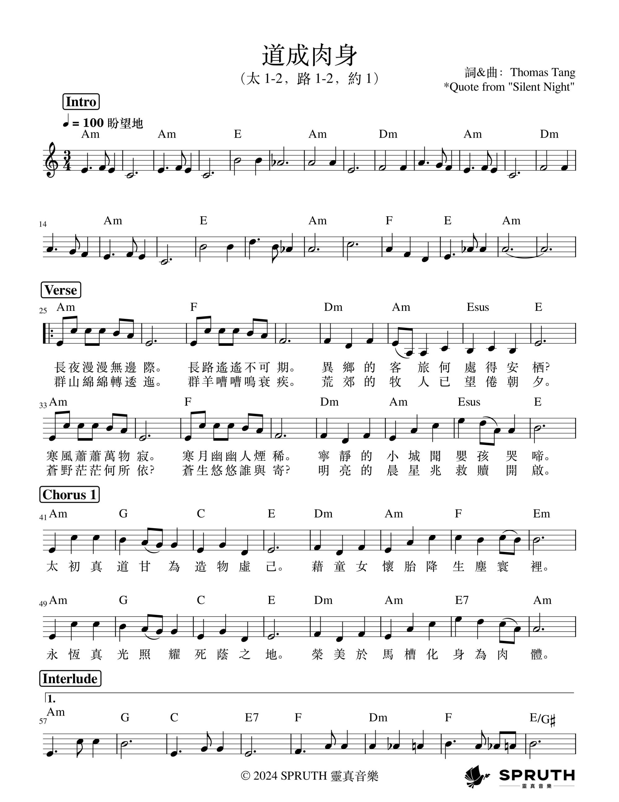 道成肉身 官方和弦五线谱