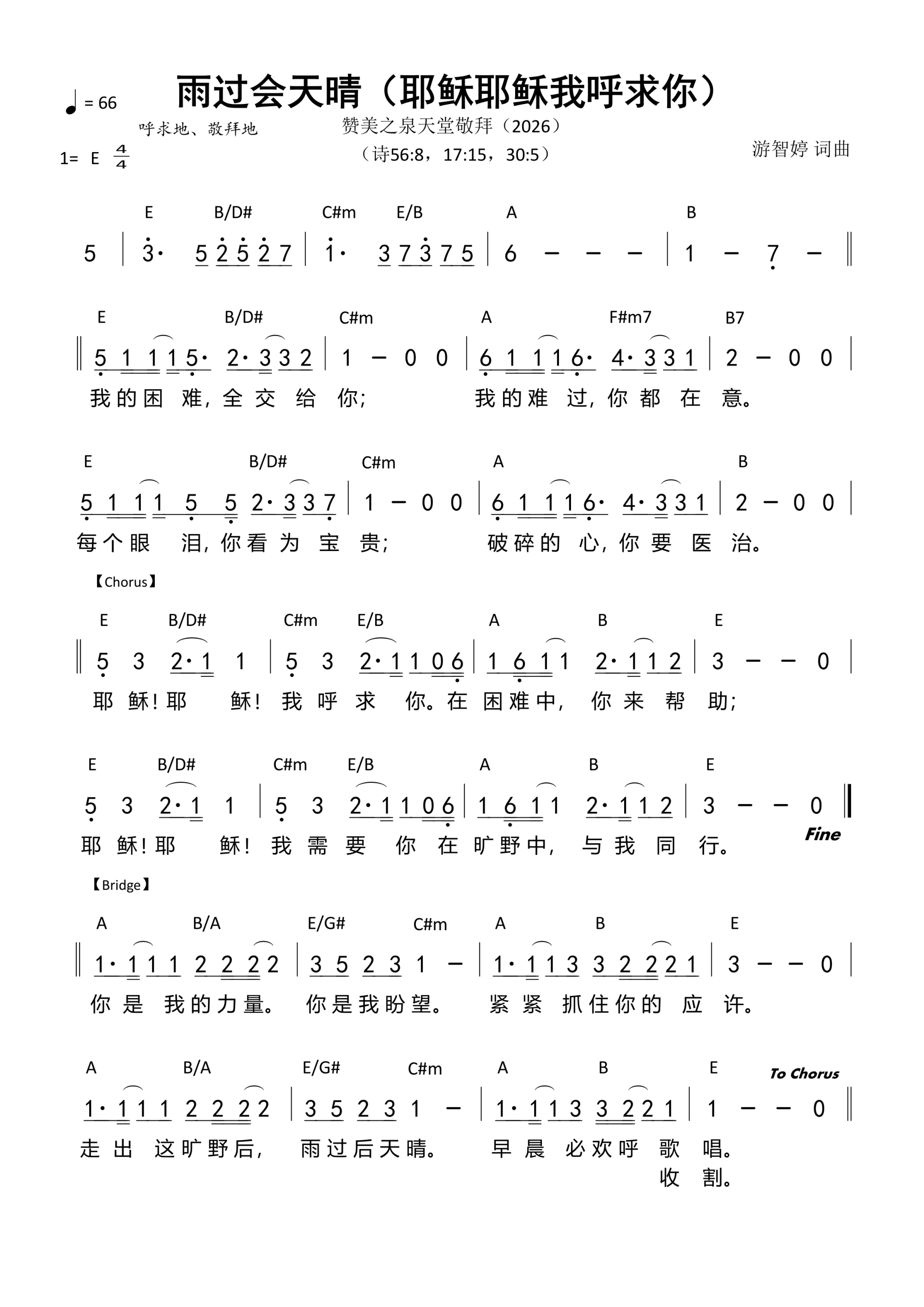 第225首 - 雨过会天晴(耶稣耶稣我呼求你)和弦简谱