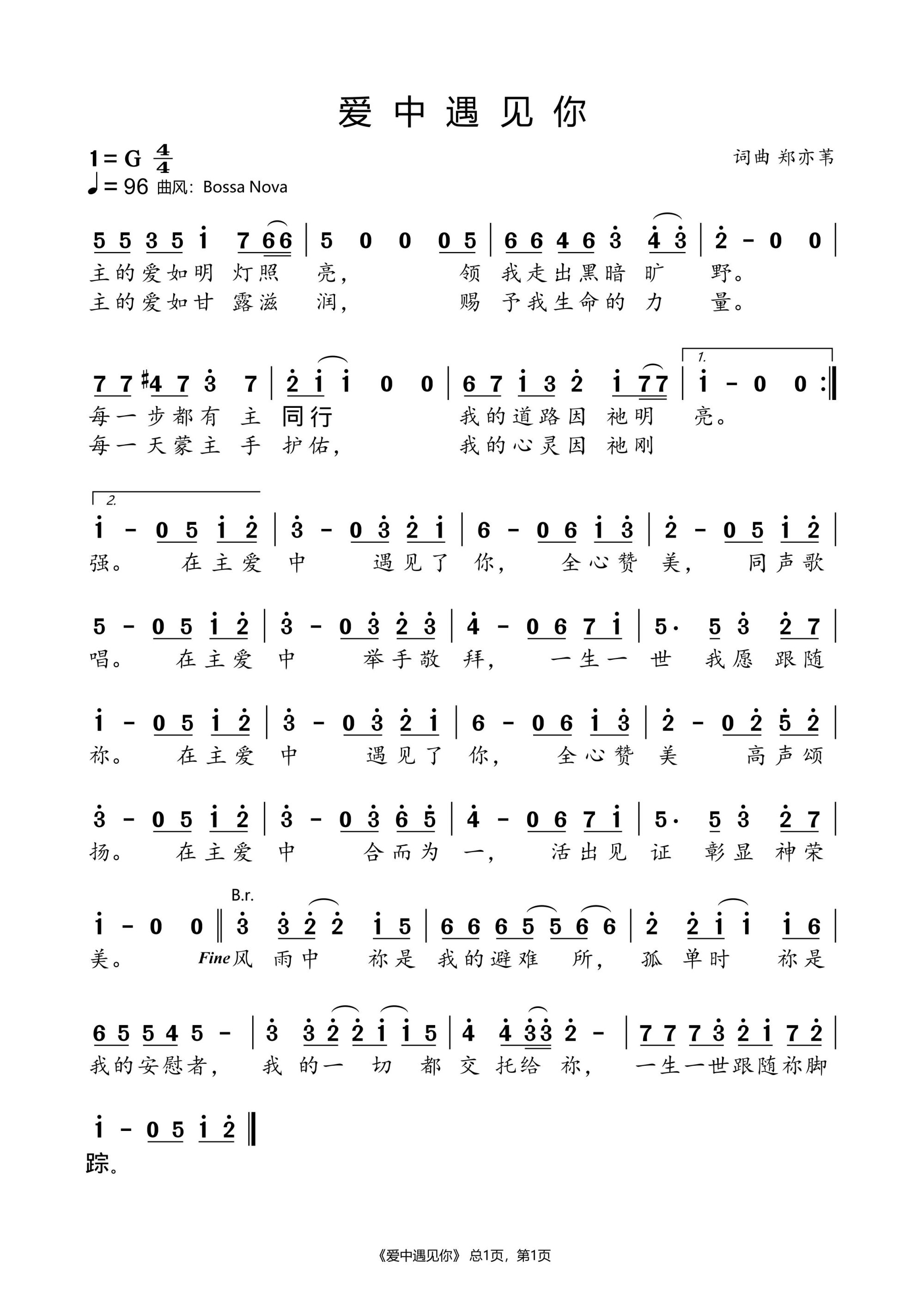 爱中遇见你 官方简谱