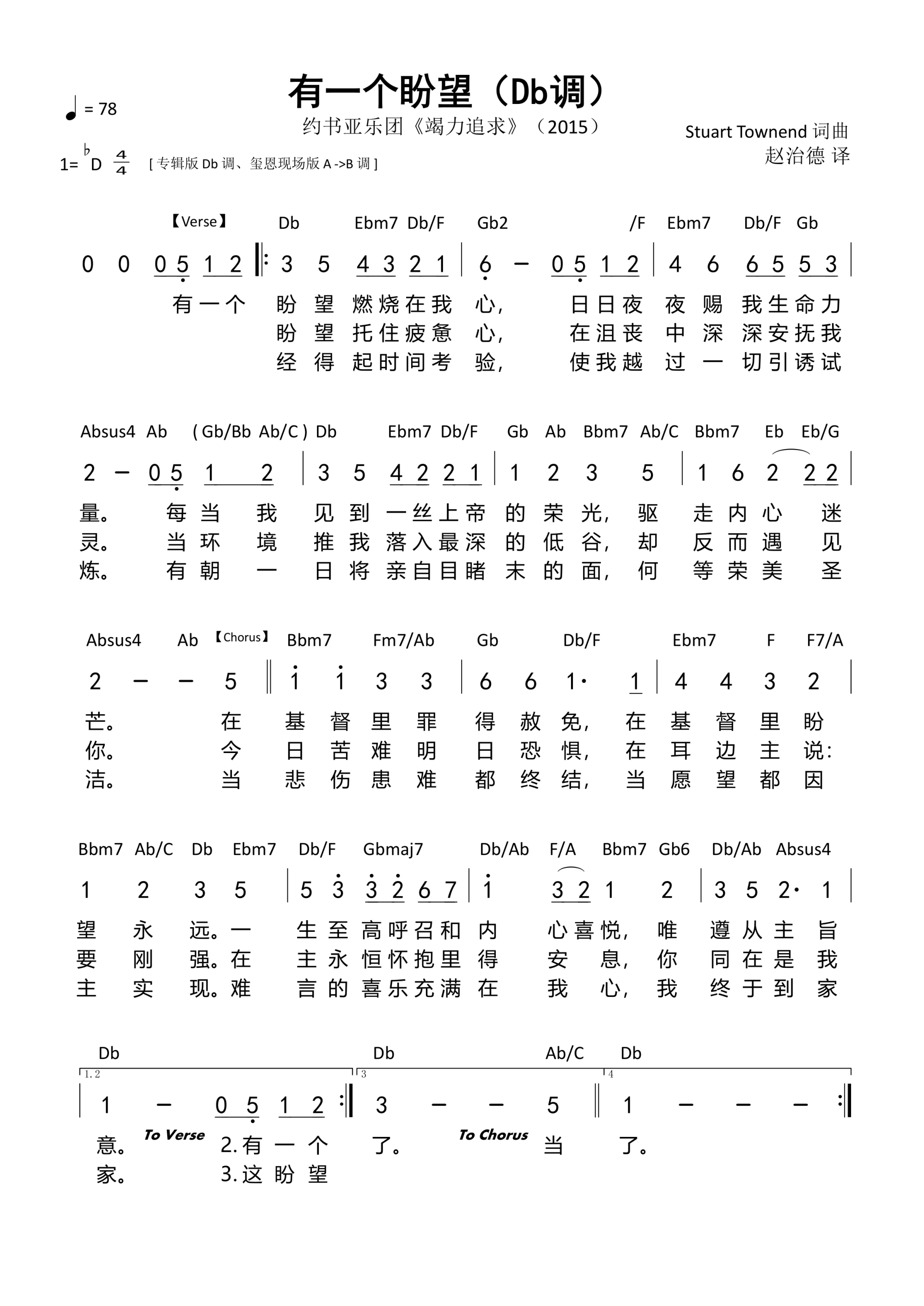 第4011首 - 有一个盼望(Db调)和弦简谱